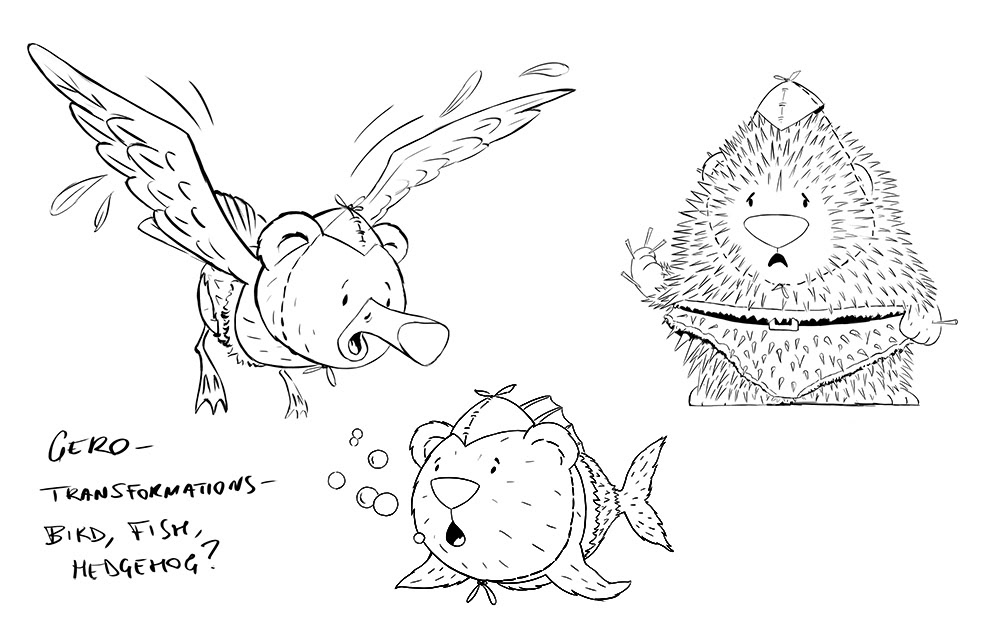 First sketches for characters from a Galapagos set children's animated adventure featuring Iguanas, seals, turtles and penguins.