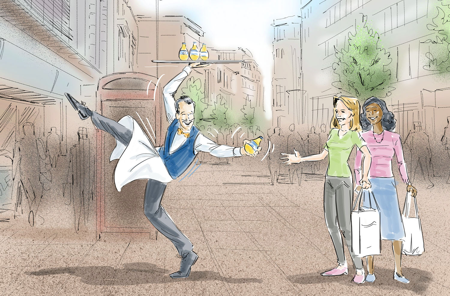 Character design for an Orangina Waiter who would engage the public in an experiential campaign.