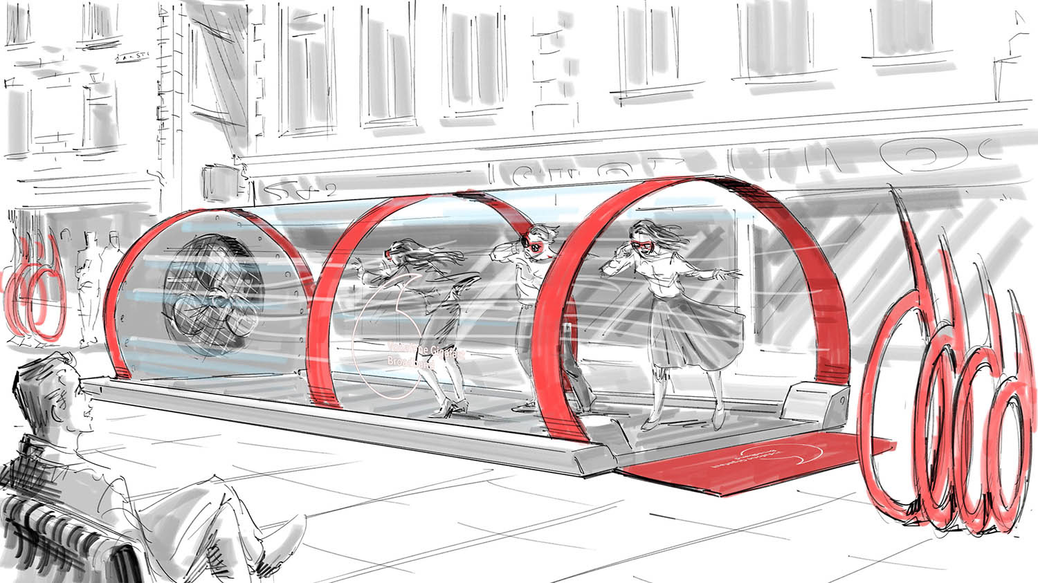 Visualisation of a Paris set Turkish Airlines walk on experience, with food served beneath the fuselage.
