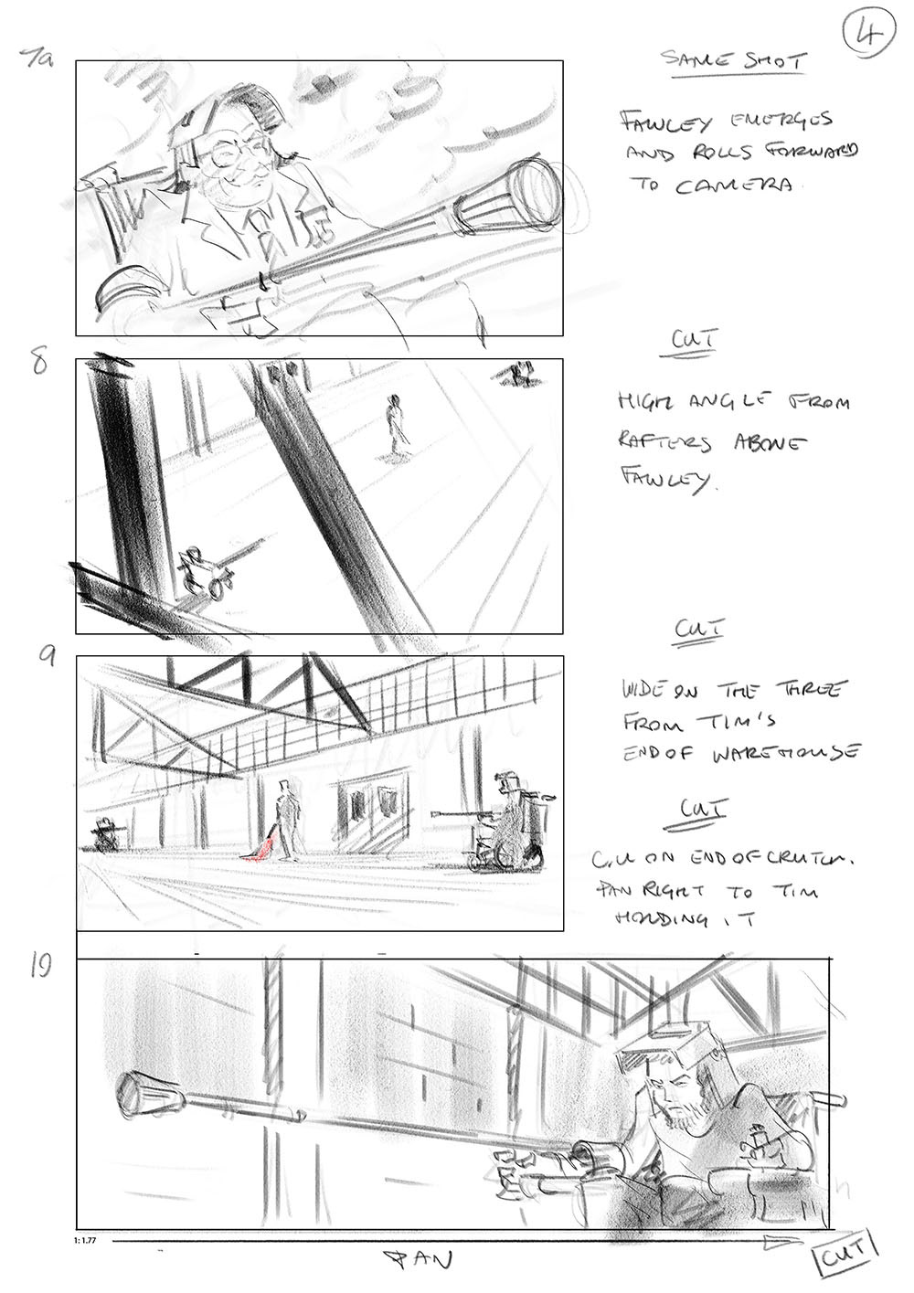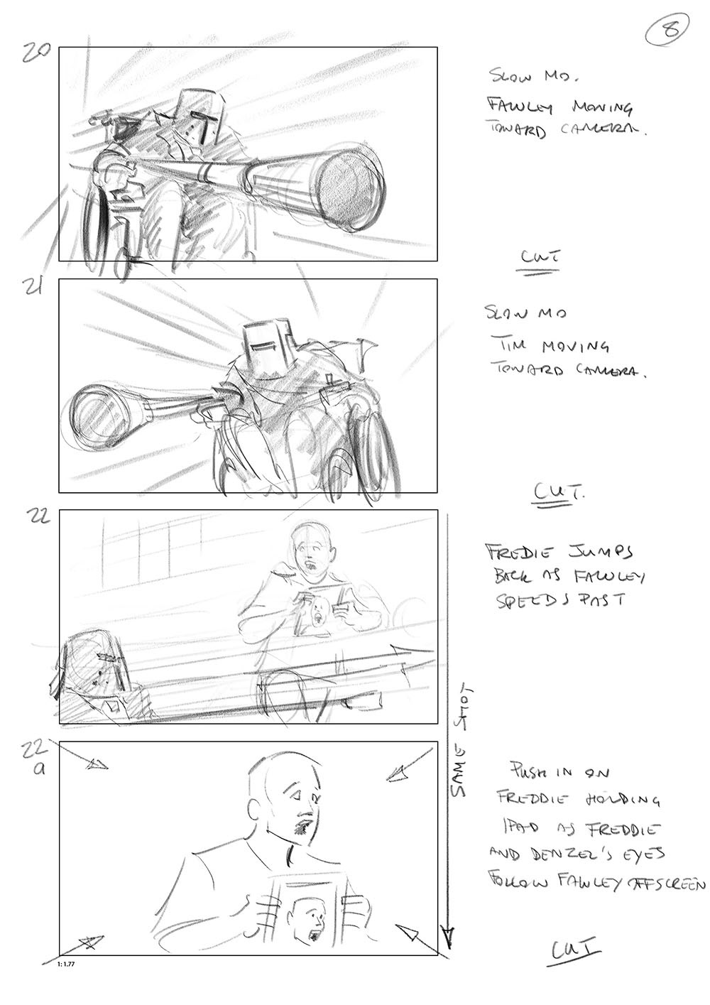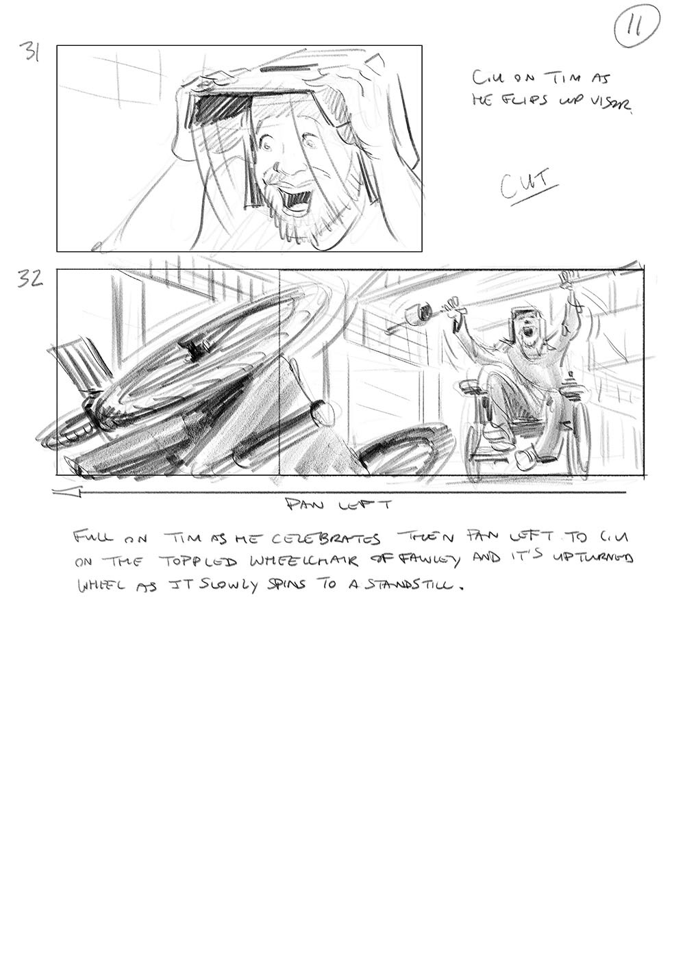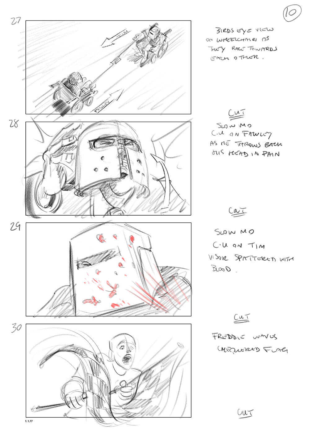 Storyboard for the Wheelchair joust scene from