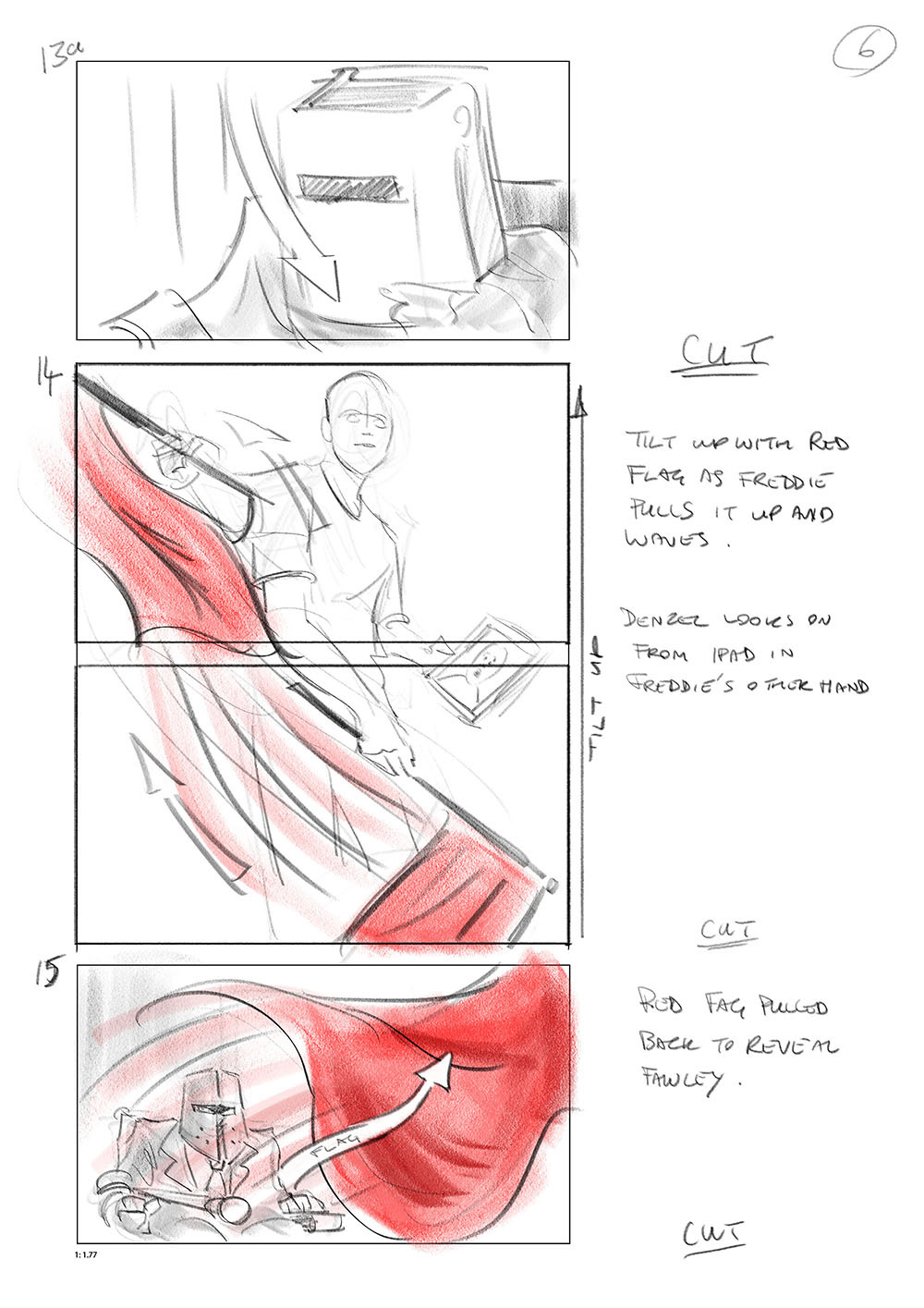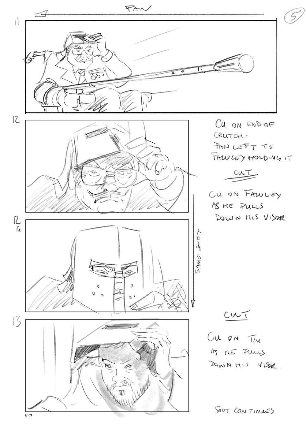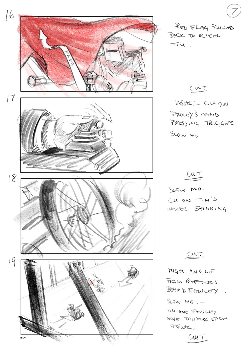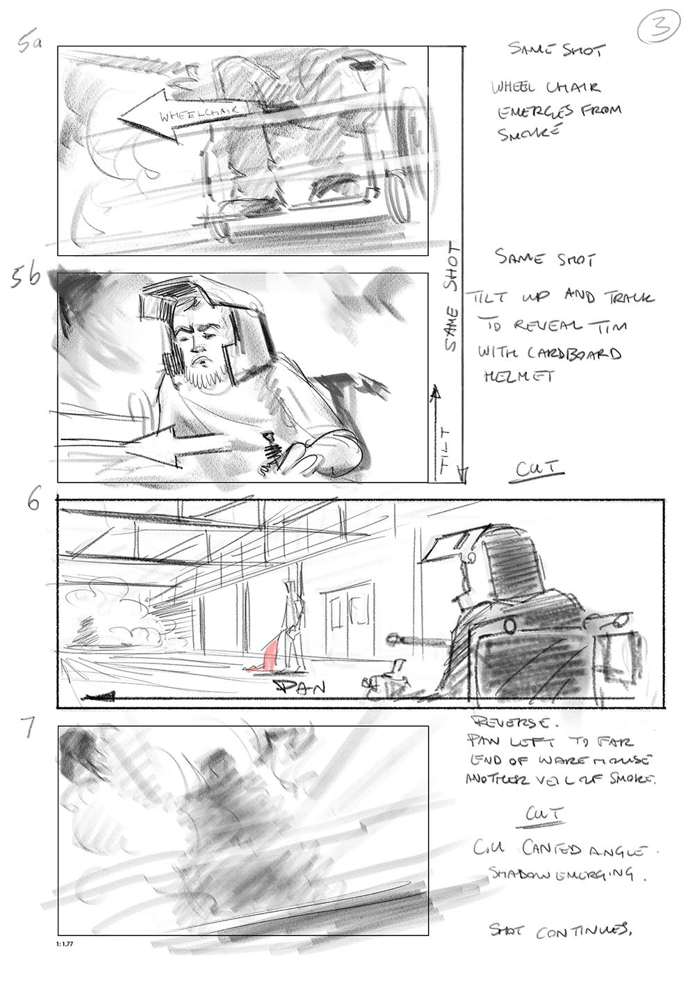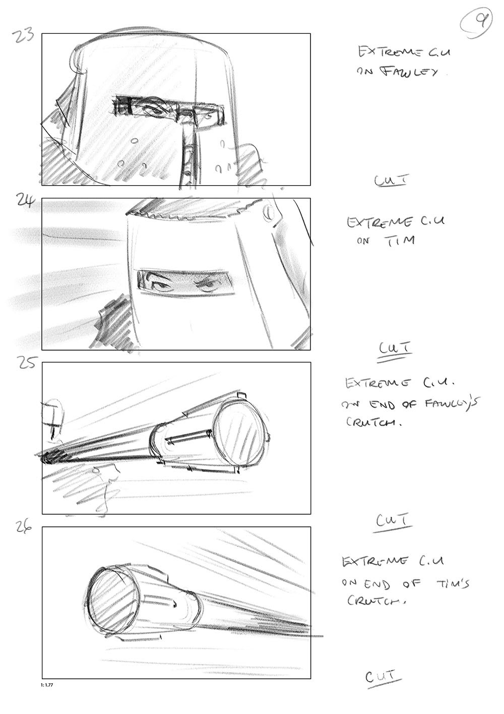 Storyboard for the Wheelchair joust scene from
