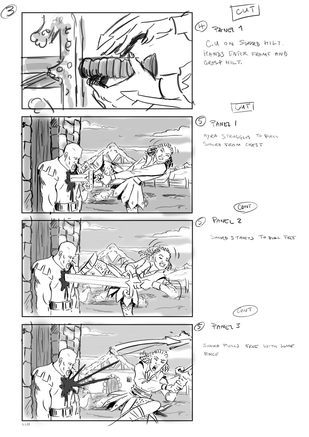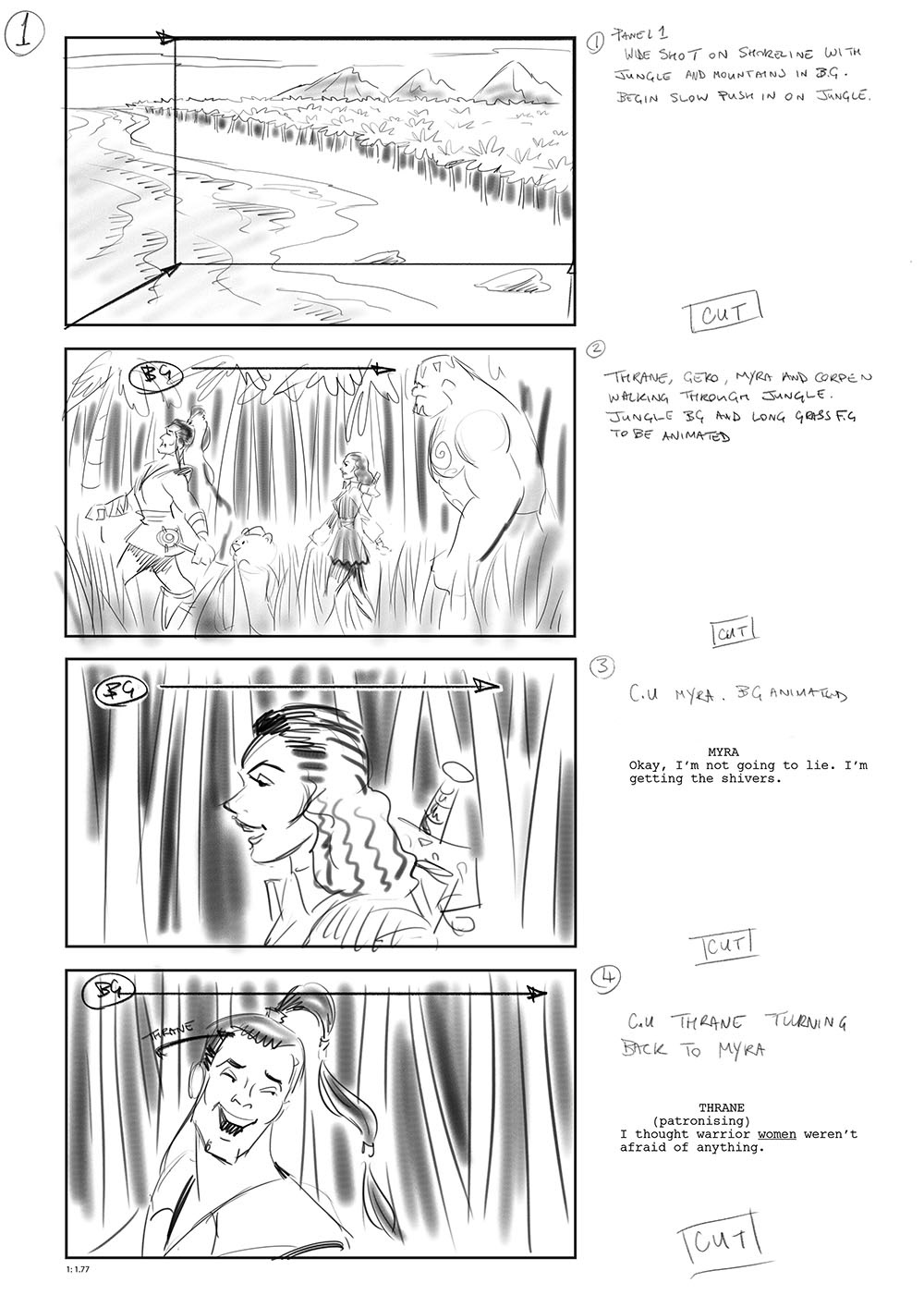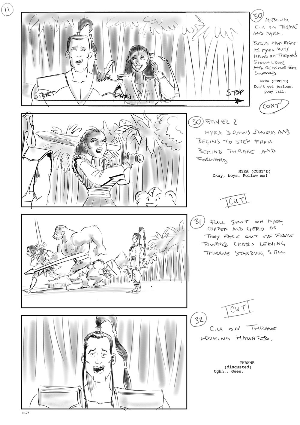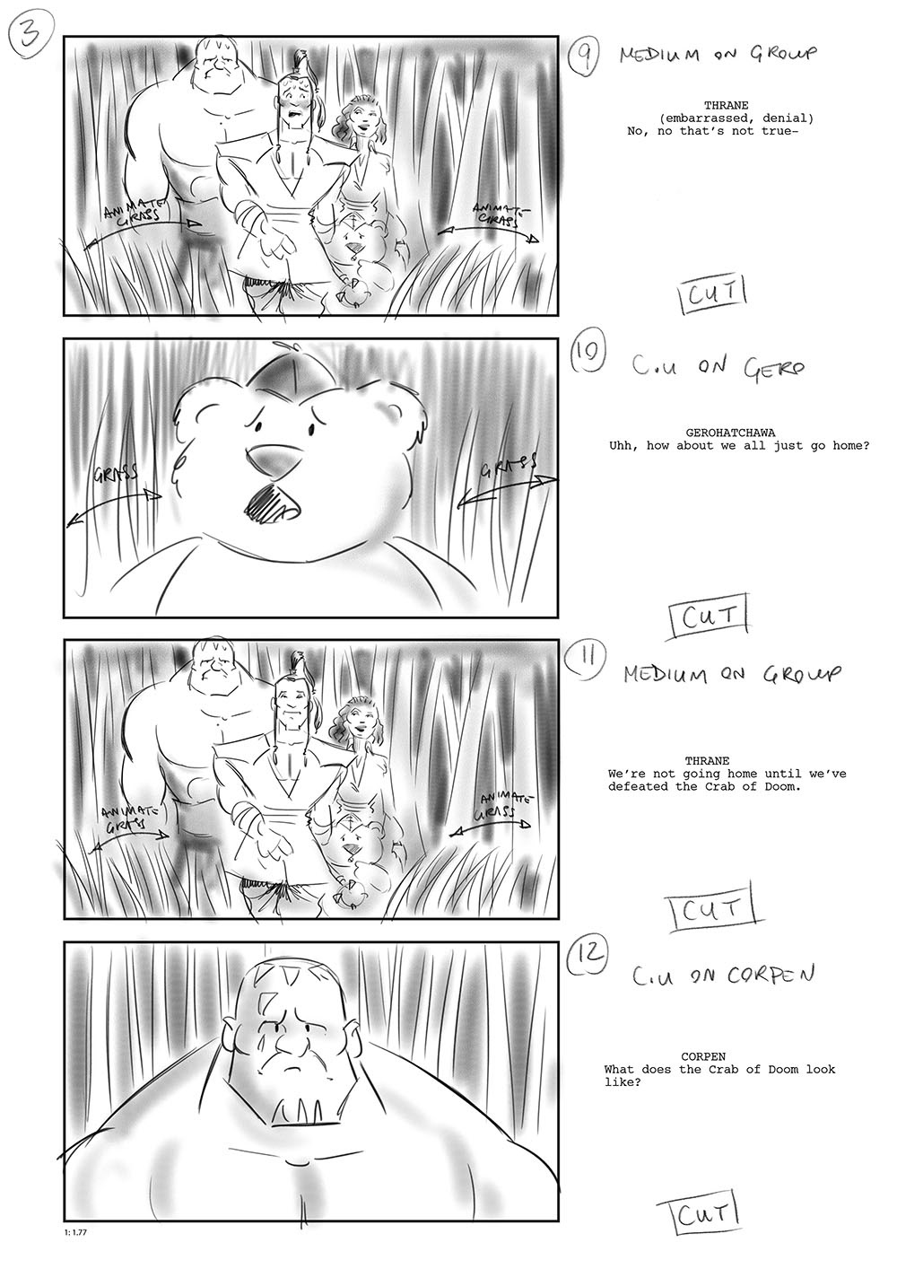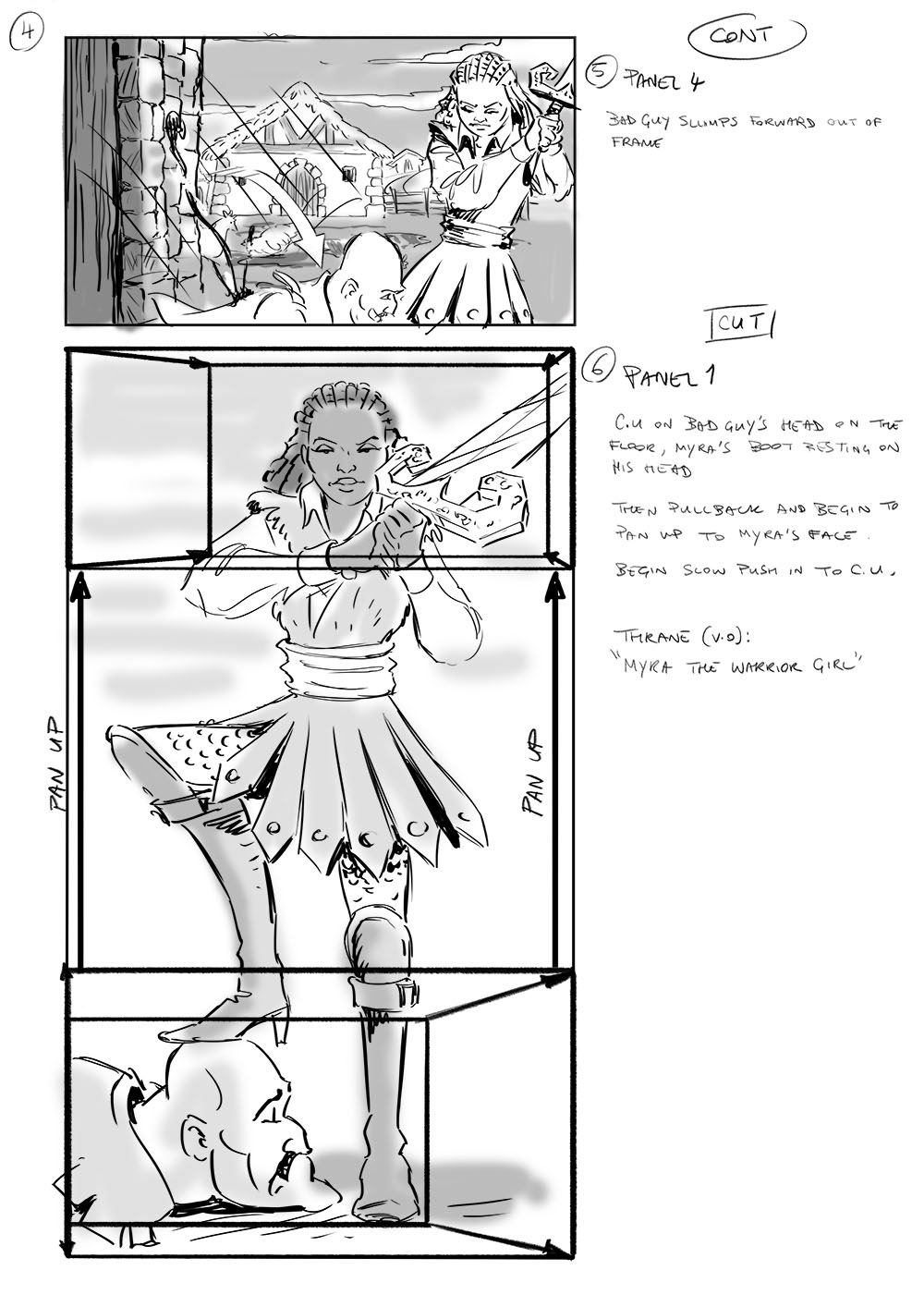 Storyboard sample for the title sequence of proposed animated fantasy/comedy series The Legend of Thrane created by Chris Hayward