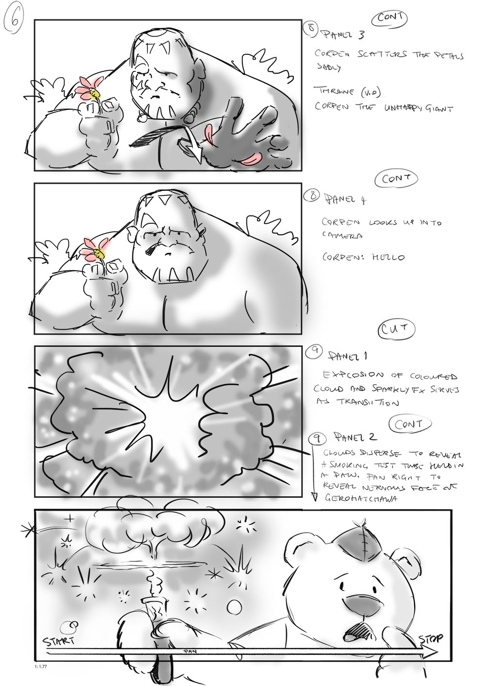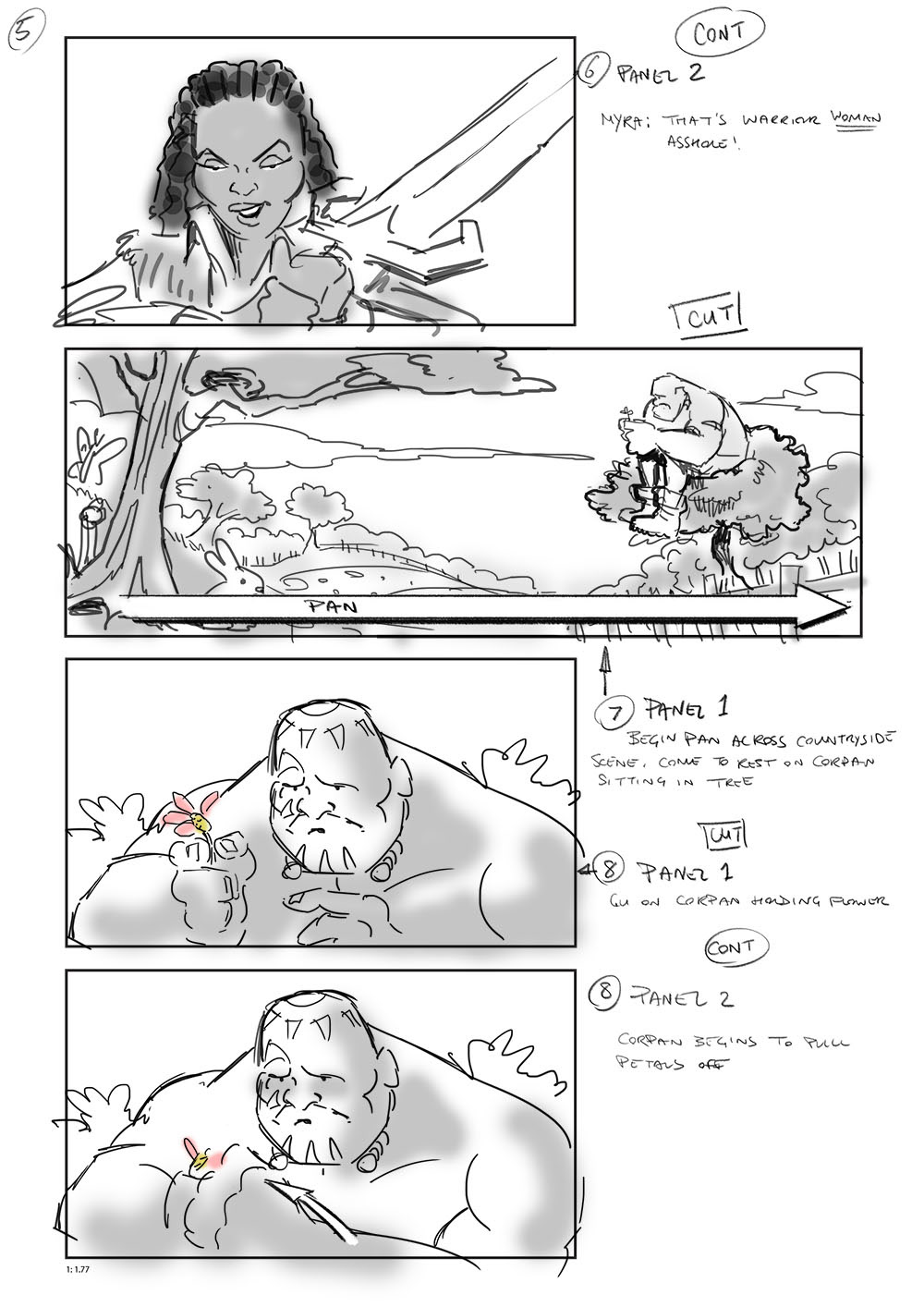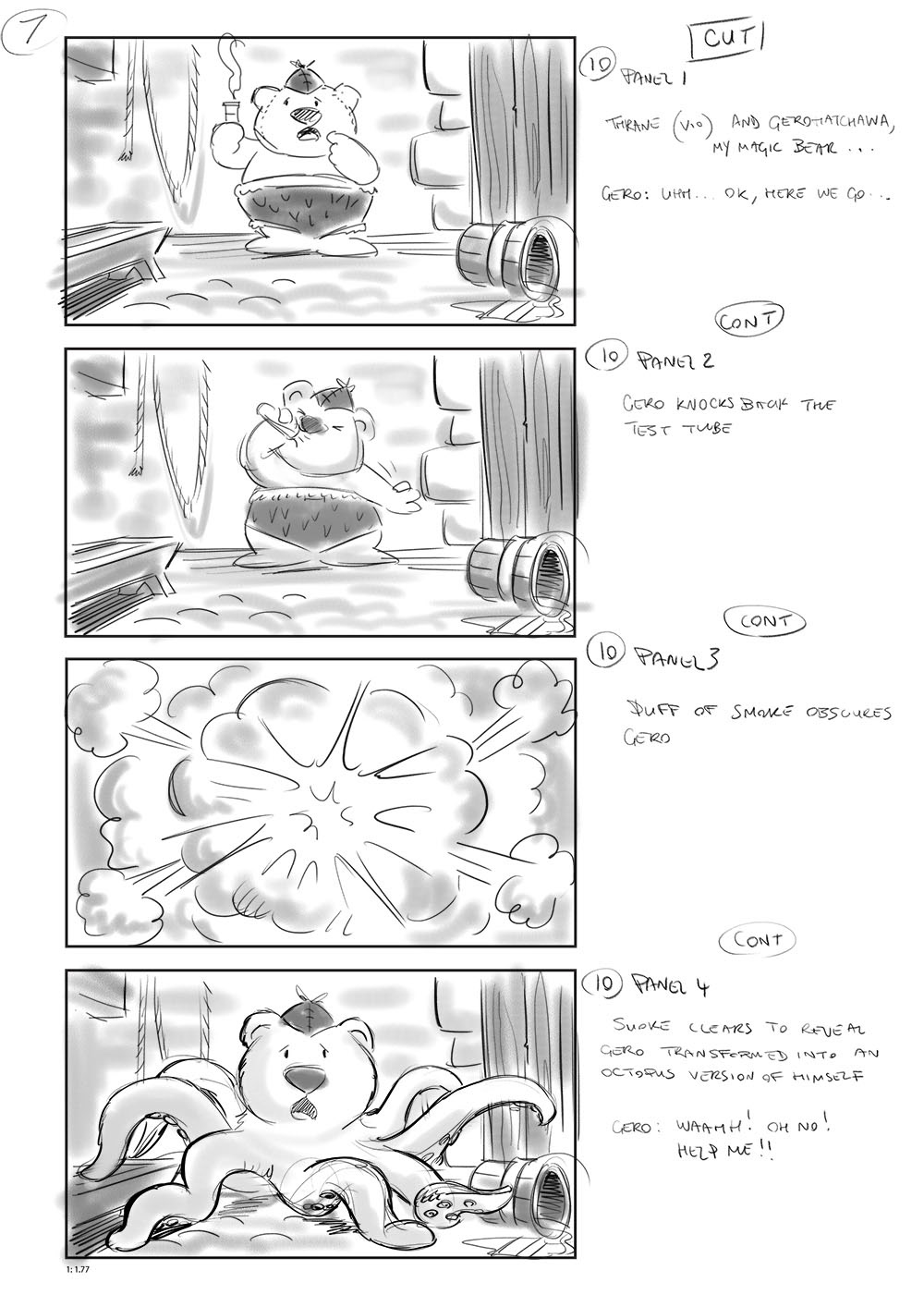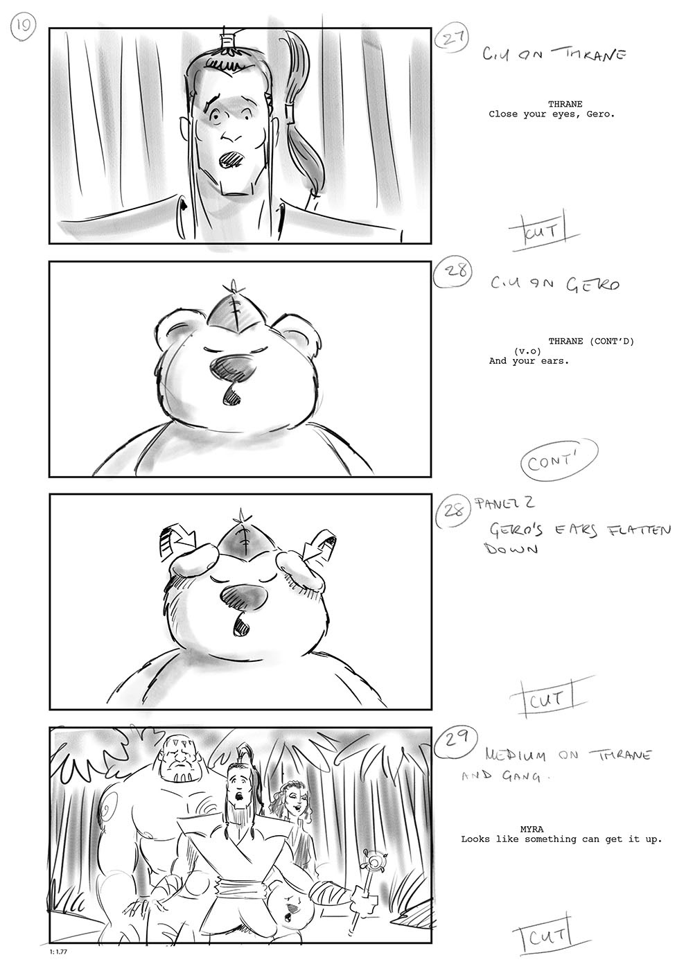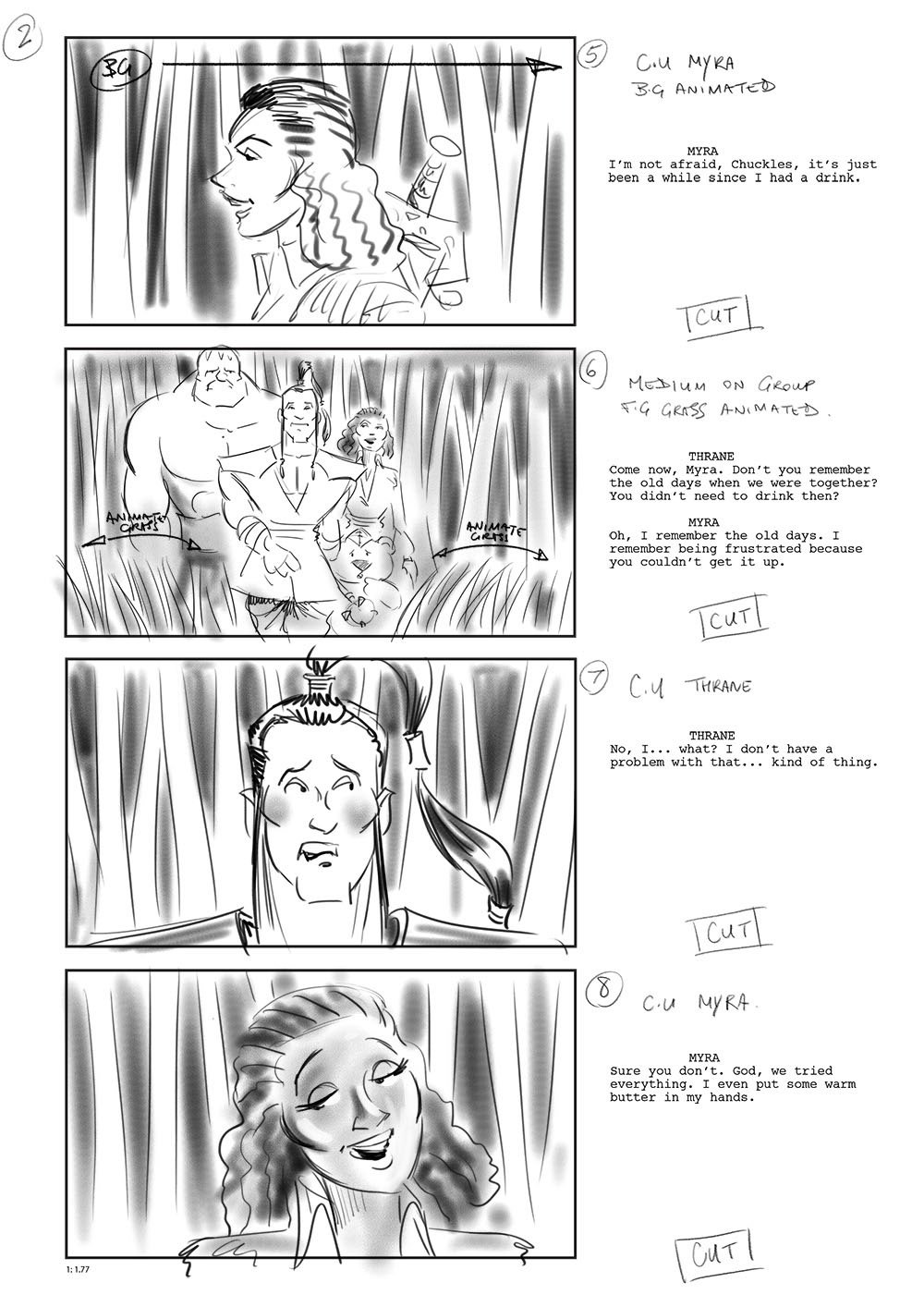 Storyboard sample for the title sequence of proposed animated fantasy/comedy series The Legend of Thrane created by Chris Hayward
