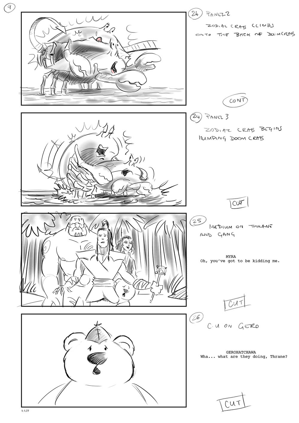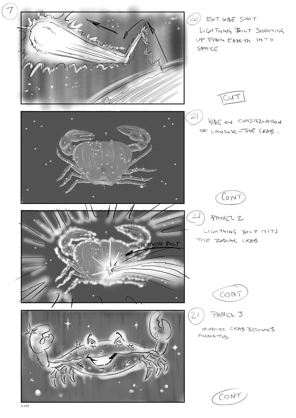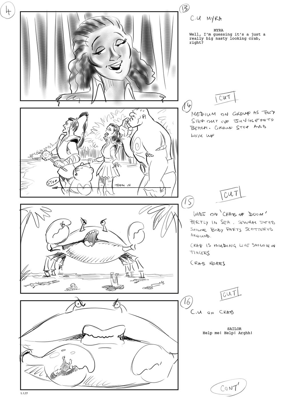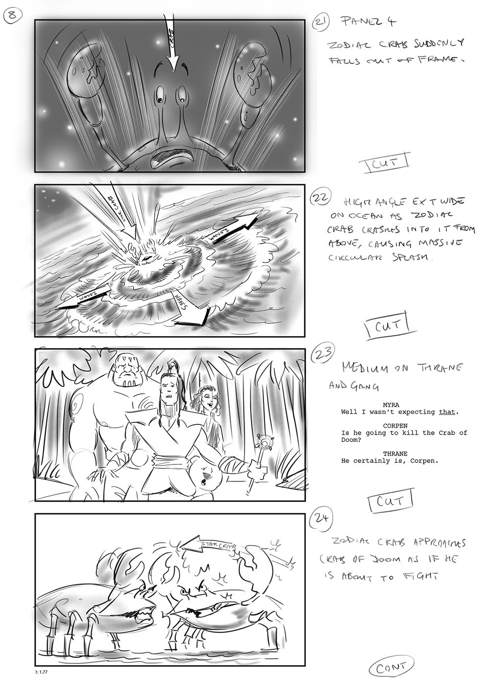 Below: Sample boards for opening sequence of the pilot episode The Crab of Doom!